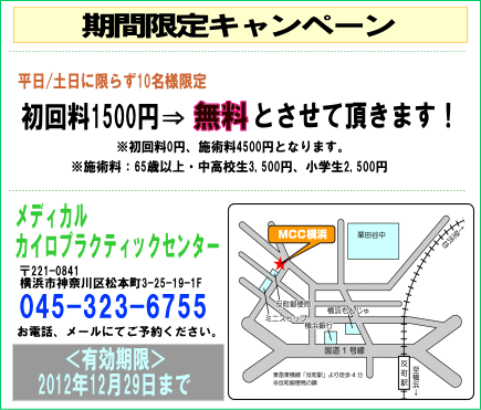 腰痛・肩こり・しびれでお困りの方は横浜市神奈川区反町のメディカルカイロプラクティックセンター